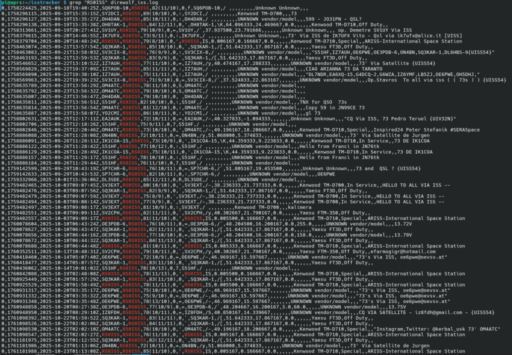 The system entered the testing phase and began logging on September 18, 2025. As seen from the log records below (or attached logs), the ISS was heard and recorded during every observable pass.